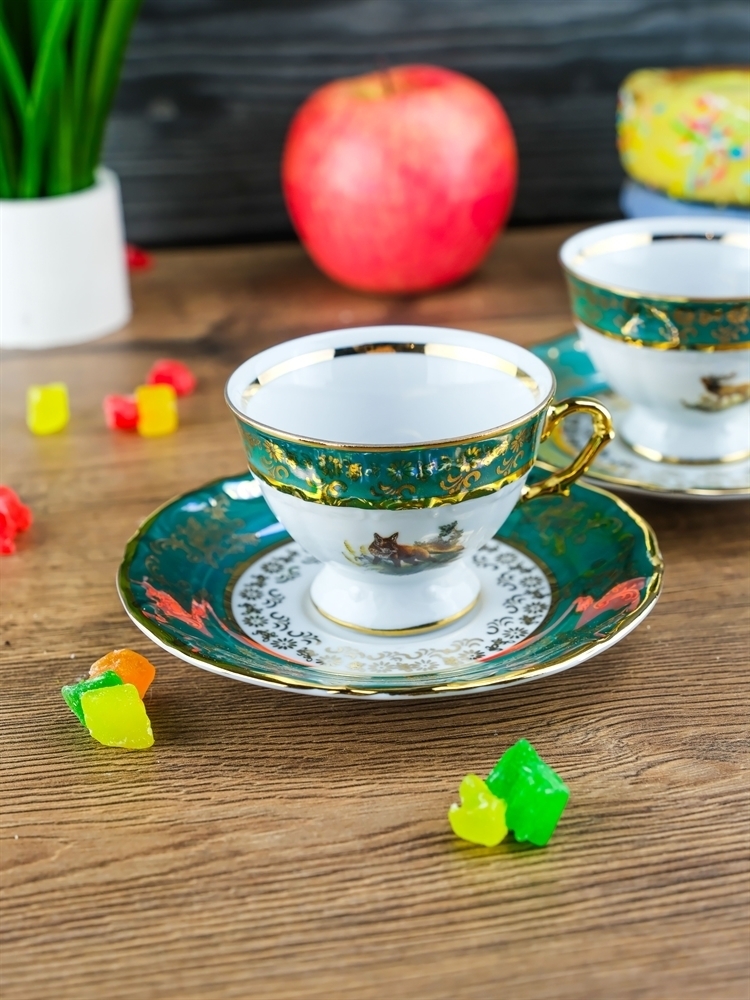 Набор мокко кофейных пар Охота зеленая Мария-тереза (100 мл), на 6 персон, 12 пр. 61622 Repast