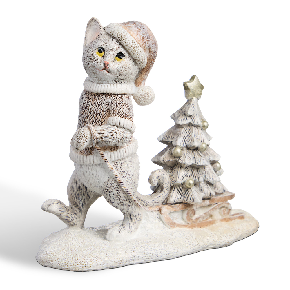 Статуэтка Котик с елочкой, 13х5.5х11.5 см