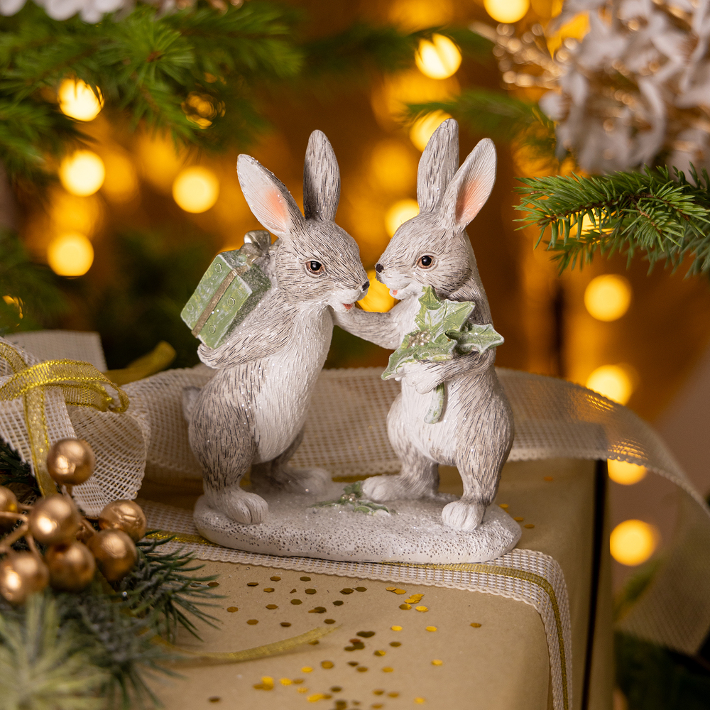 ГлавнаяНовый ГодНовогодние украшенияСтатуэтка Кролики, 10.5х6х13 см