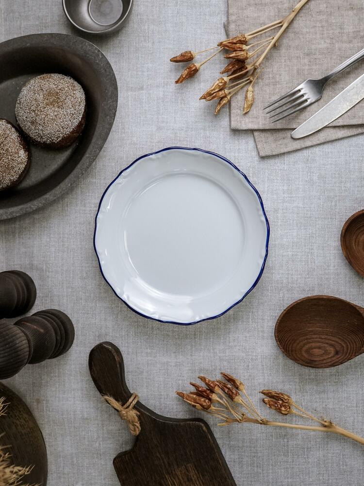 Коллекция Maria Blue от компании Porland включает элегантные блюда, тарелки, салатники, чайные чашки, блюдца, а также другую столовую посуду и предметы сервировки, изготовленные из высокопрочного белоснежного фарфора с глянцевым глазурованным покрытием. Изделия имеют лаконичные классические формы со слегка волнистыми краями, изящный рельефный декор и тонкую окантовку насыщенного синего цвета, благодаря чему идеально подходят для создания изысканной сервировки. Посуда Maria Blue отлично сочетается с любым декором, будь то яркая скатерть или сервировочные салфетки в спокойных тонах, и органично вписывается в любой интерьер, придавая ему благородный вид. Можно разогревать в микроволновой печи и мыть в посудомоечной машине.