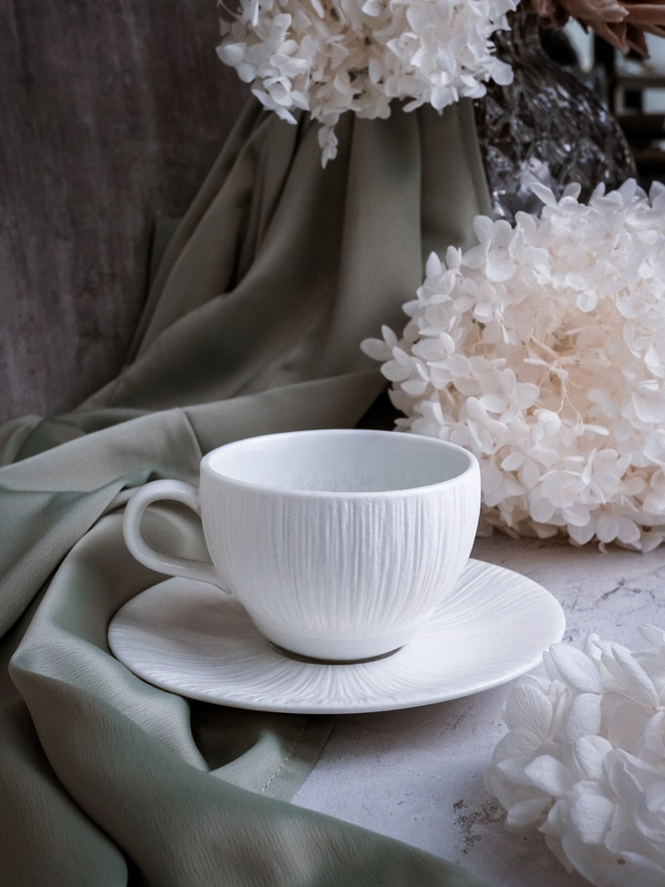 Коллекция Boletus от производителя Casa Di Fortuna – это изысканные блюда, тарелки, салатники, рамекины, заварочные чайники, чашки, блюдца, а также другая столовая посуда и предметы сервировки, изготовленные из высококачественного фарфора с прочным матовым и глянцевым глазурованным покрытием. Дизайн серии воплощает собой утонченность и грацию, единство искусства и природы. Предметы имеют изящную фактурную отделку, которая навевает мысли о легкой балетной пачке на балерине, парящей в танце. Центр изделий остается гладким, что создает элегантный визуальный контраст. Особенность линейки – использование эффектарной глазури, которая при обжиге создает на поверхности уникальный перламутровый рисунок нежного серо-зеленого оттенка. Благодаря этому каждый предмет имеет индивидуальный характер и выглядит необыкновенно выразительно. Посуду Boletus можно использовать в микроволновой печи и мыть в посудомоечной машине.
